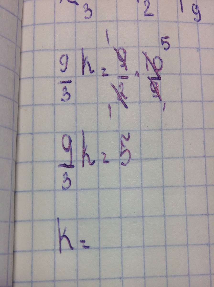 frac{9}{3}k=5\k=frac{3*5}{9}=frac{15}{9}=frac{5}{3}