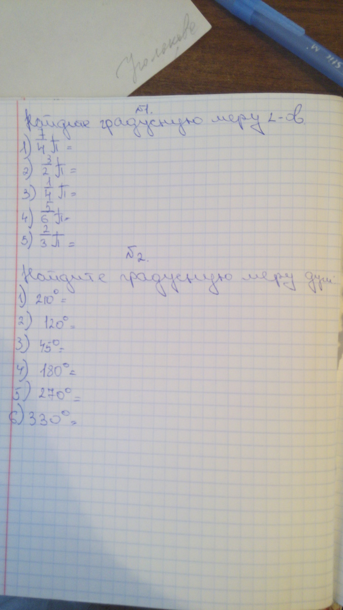 1) 7/6п 2)2/3п 3)п/4 4)п 5)3/2п 6)11/6п
