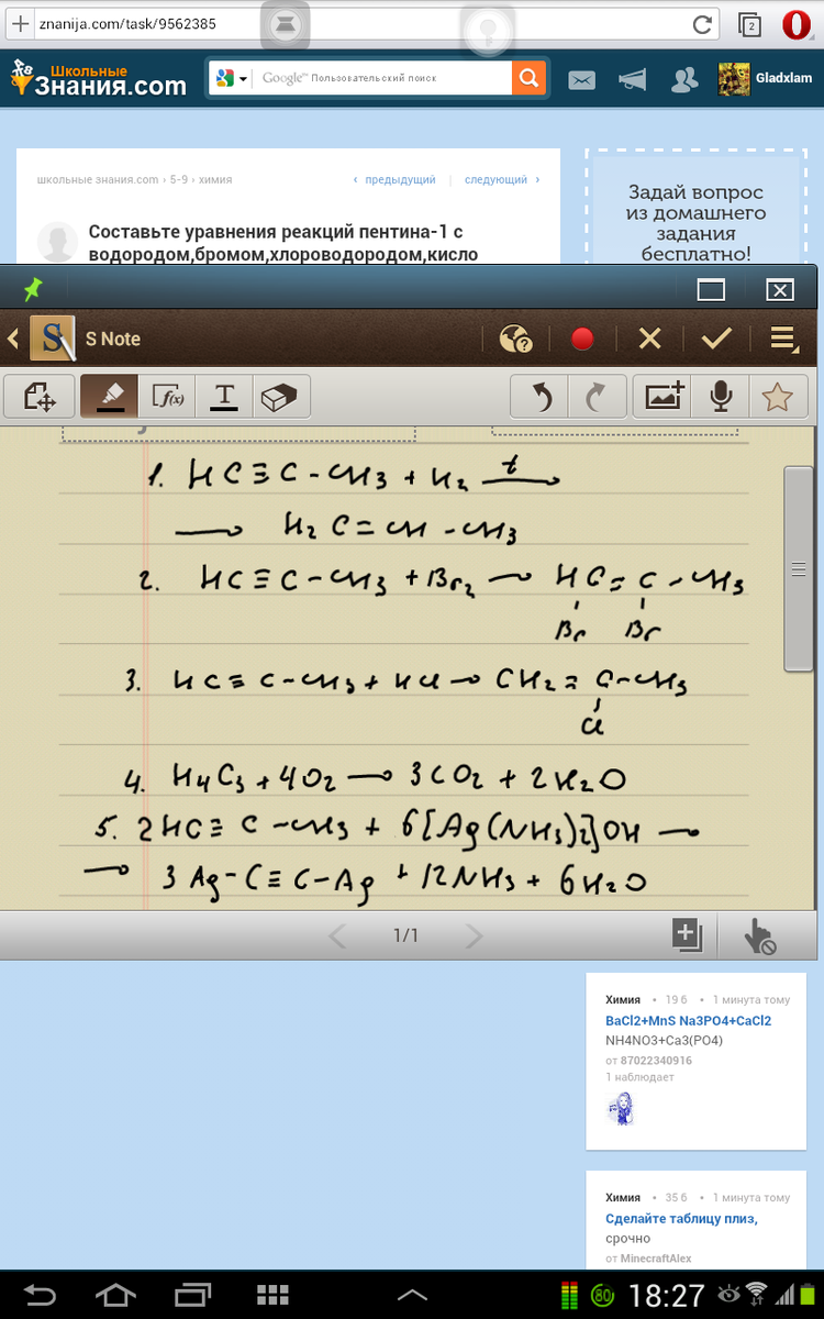 Составьте уравнения реакций пентина-1 с водородом,бромом,хлороводородом,кислородом,амиачным раствором оксида серебра.