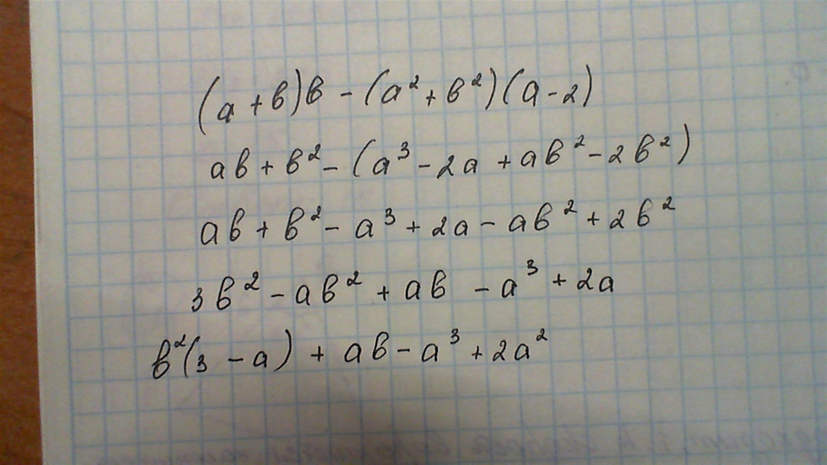 Спс тебе, но ответ получится такой: ab+3b^2-a^3-ab^2+2a^2.