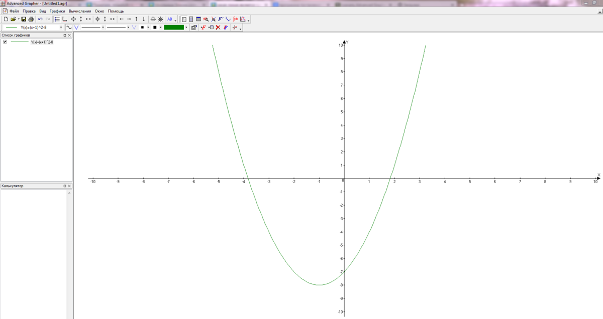 Есть замечательная программа Advanced Grapher ,скачайте её! Мне очень помогает в учебе. Главное, правильно ввести функции и график на виду! Парабола ответ