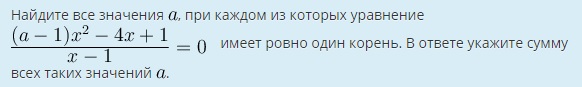 Найдите все значения a, при каждом из которых уравнение имеет ровно один корень. В ответе укажите сумму всех таких значений a.