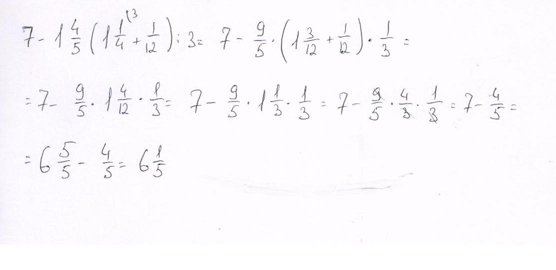 7 - 14/5(11/4 + 1/12) : 3 = 4 16/45