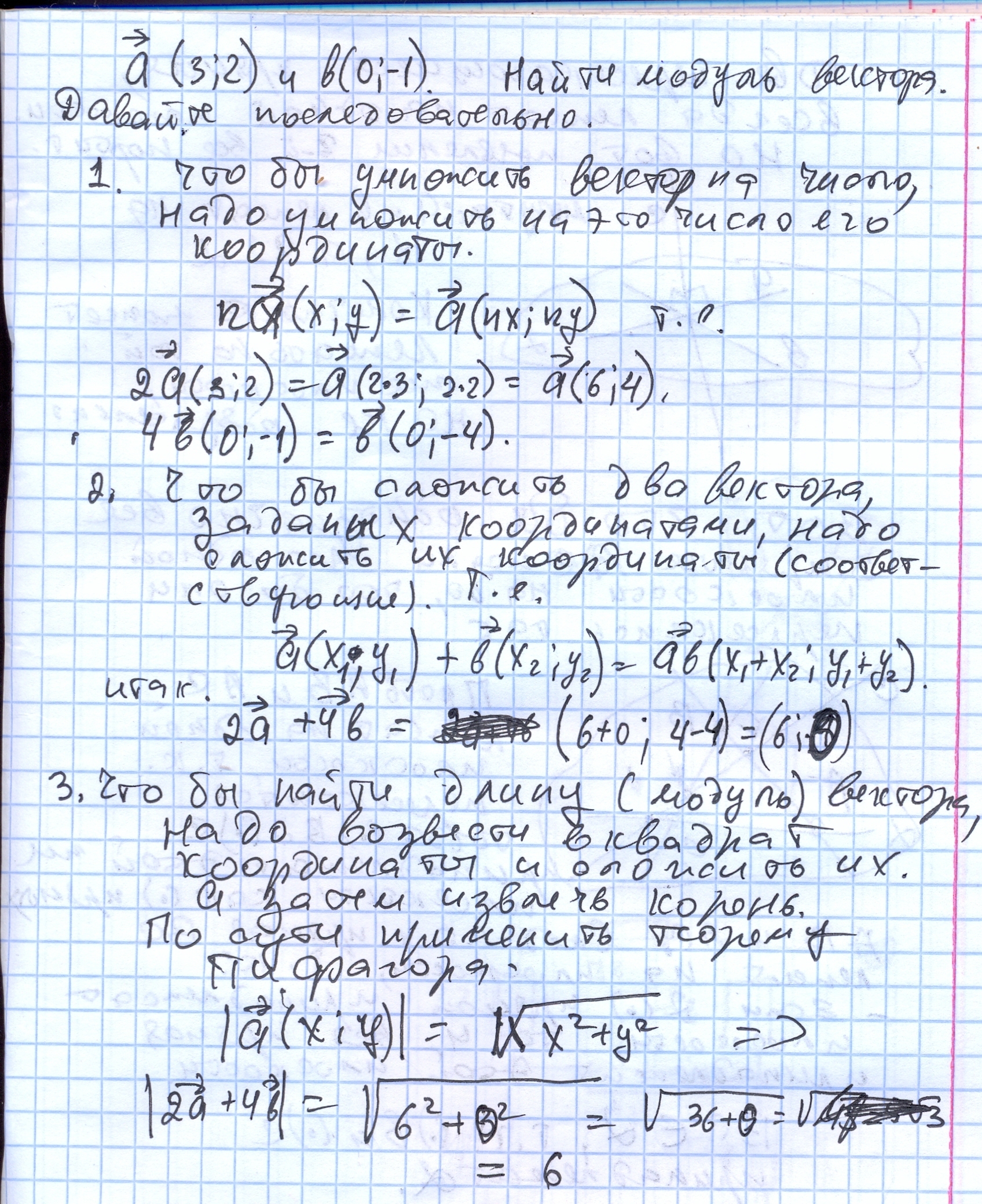 даны векторы a(3 2) и b(0 -1) найдите модуль вектора- 2a+4b