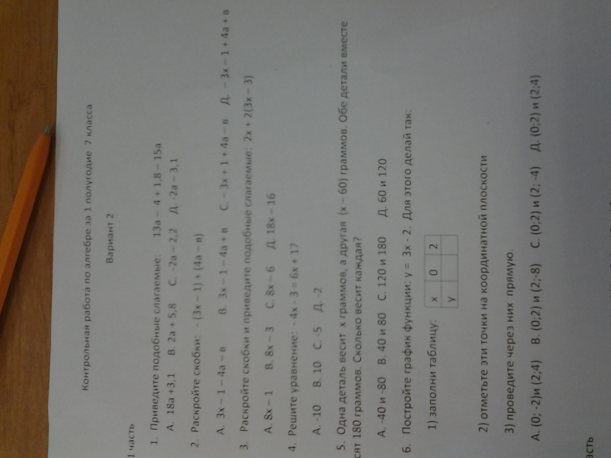 2. -(3х-1)+(4а-в)=-3х+3+4а-в