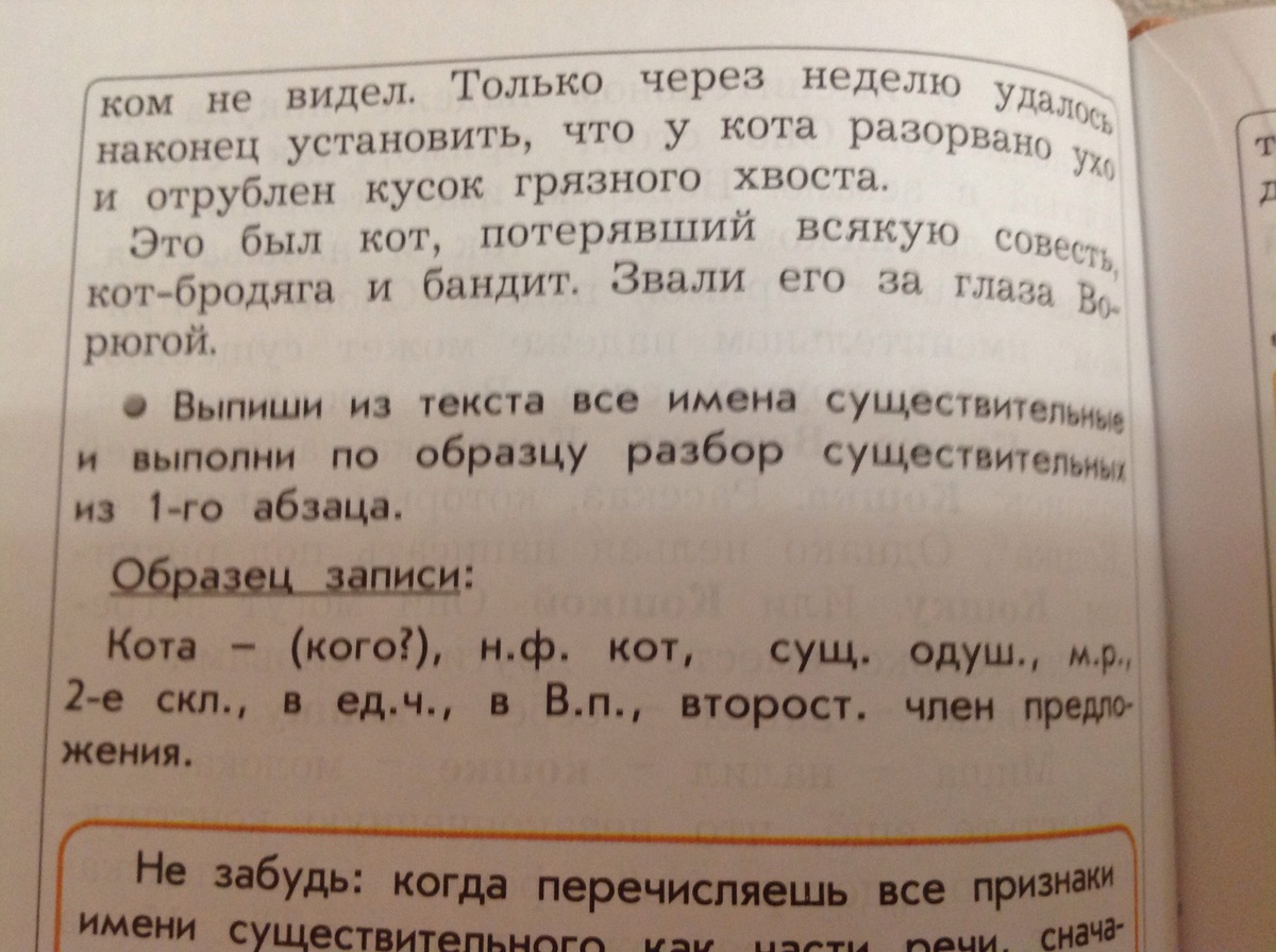 Выпиши все имена существительные и выполни по образцу разбор имён существительных из 1 обзаца