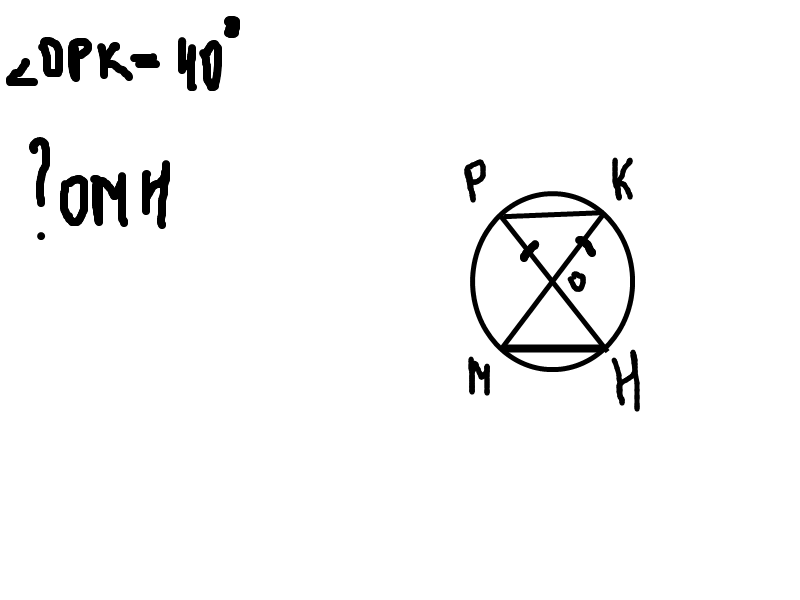 треугольник ОРК равнобедренный,потому что ОР и ОК радиусы,следовательно ОРК=ОКР=40 гр.