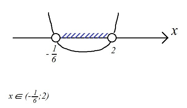 х ∈ (-1/6; 2)Ответ: (-1/6; 2).