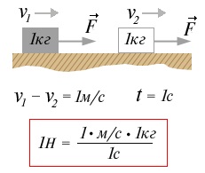 сила в 1Н изменяет скорость тела массой 1 кг на 1м/с за 1с