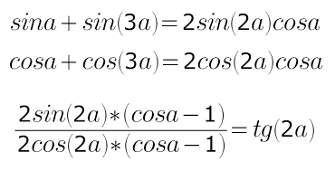 можно вопрос для уточнения? я просто не уверен в своём понимании четности косинуса. Вот, к примеру, к выражение в числителе sina+sin3a преобразовываем формулой сложения. Выходит 2sin2a cos(-a). у косинуса отрицательный знак уничтожается за счет правила "четности косинуса"? или мы знаки минус сократили потому, что и в числителе и в знаменатели они были?
