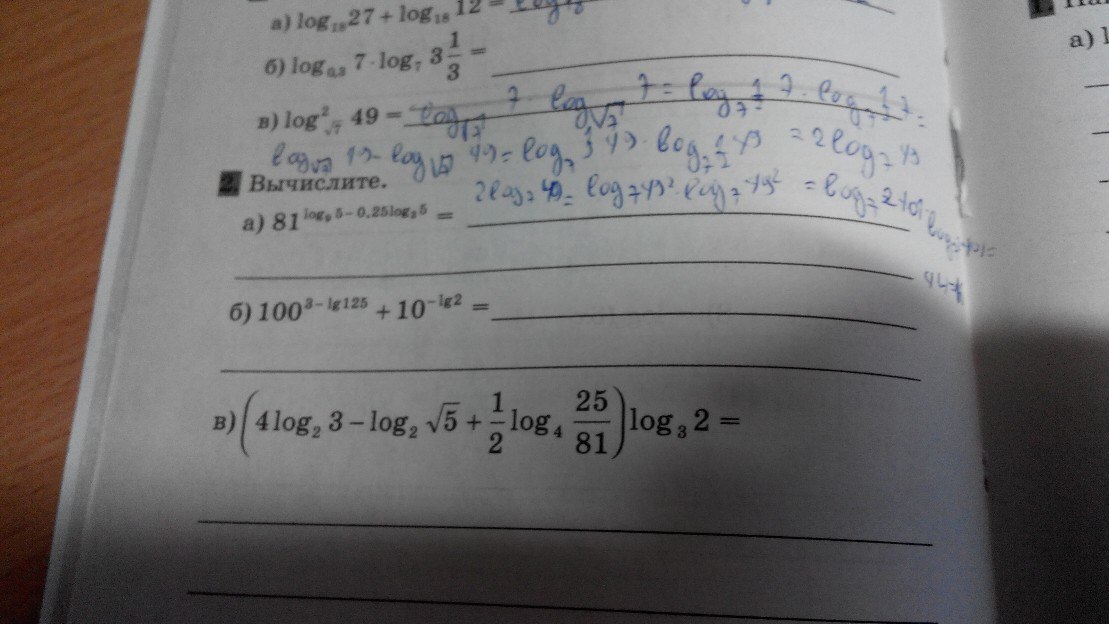 а) = 81^log5·81^(-0,25log5)=(9^2)^ log5·(9^2)^(-0,25log5)=(9^log5)^2 · 9^-05log5=