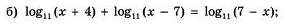 Чтобы правая часть существовала, необходимо x < 7, а для левой - x > 7. Решений нет.