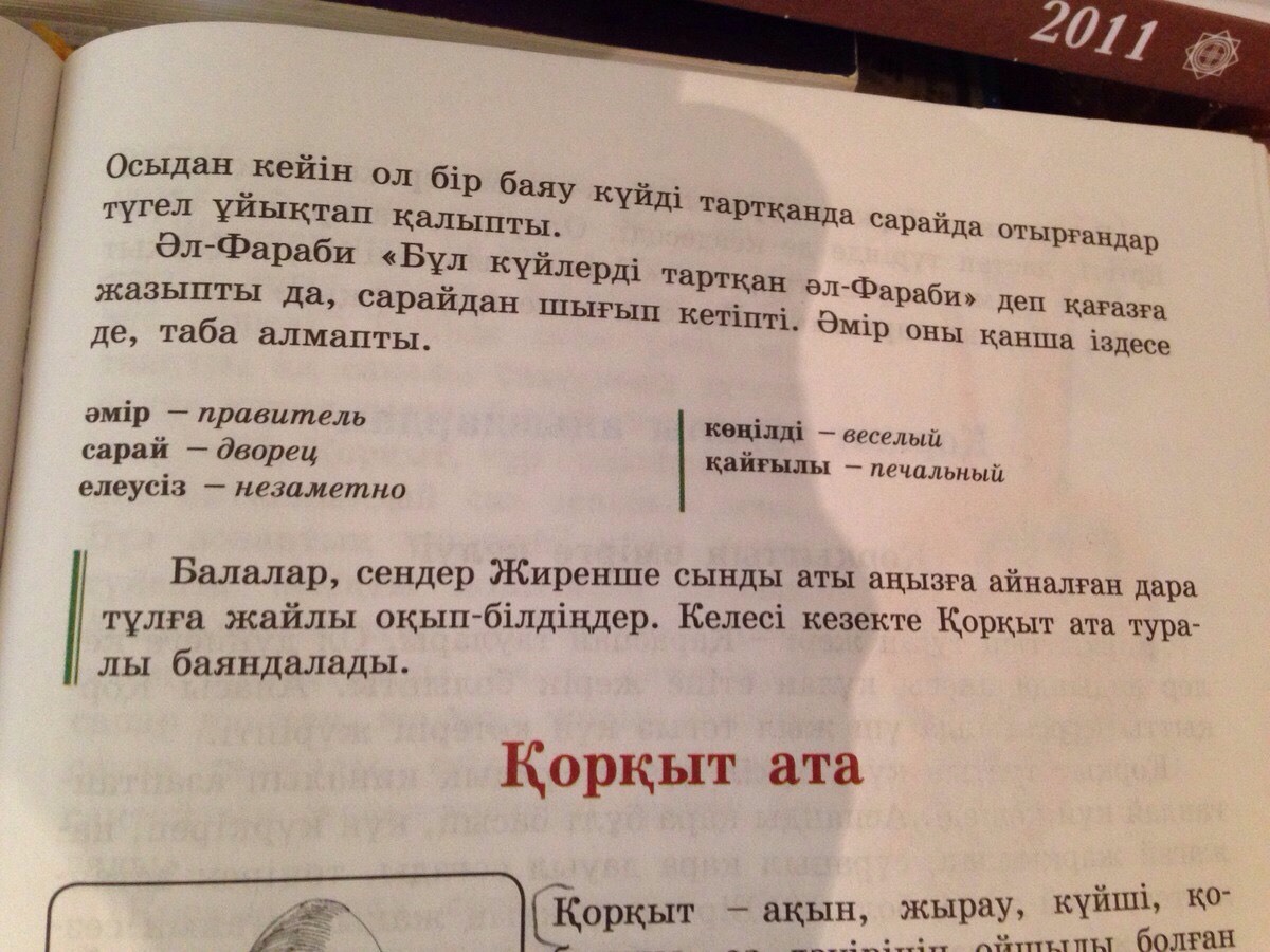 Аль - Фараби написал на бумаге: "Эти мелодии играл на домбре Аль - Фараби"и с тем ушел.Но сколько правитель не искал его,сколько бы слуг не послал за ним, его так и не нашли.