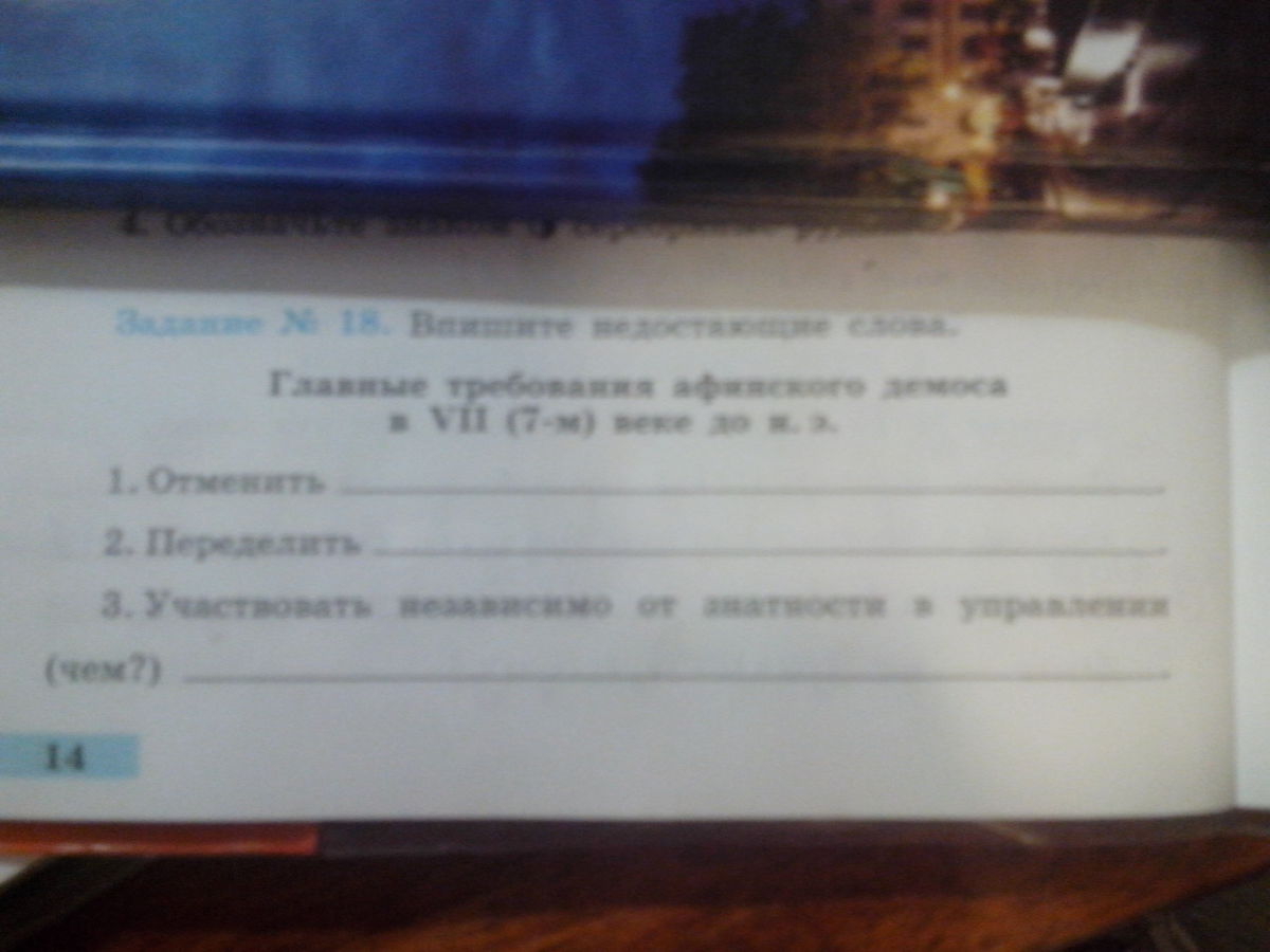 История 5класс .Впишите недостающие слова. Главные требования афинского демоса в 7 веке до нашей эры. 1) Отменить....2) Переделить......3) Участвовать независимо от знатности в управлении (чем?) ...... !!! ПОЖАЛУЙСТА ПОМОГИТЕ !!!!!!!!!!