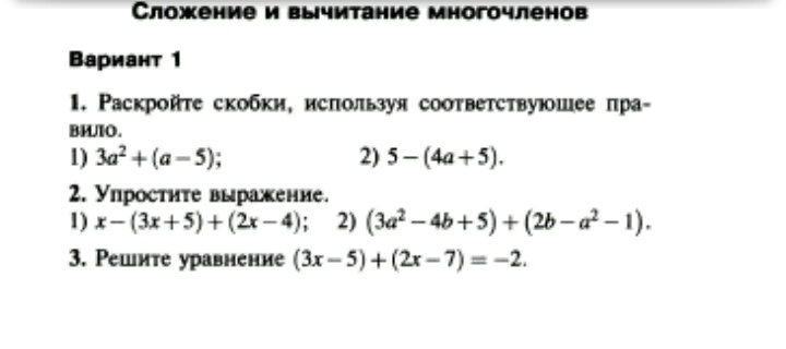 1. 1) 3a^2 + (a-5)=3a^2+a-5