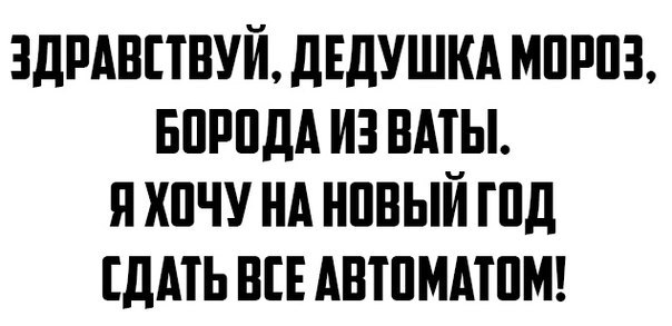 Hello, Santa Claus beard made of cotton. I wish for the new year to pass all automaton!!!