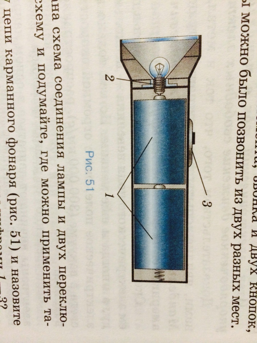 1. Батарейки 2. Лампочка 3. Выключатель.