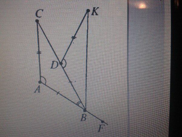 что треугольник САВ равен Треугольнику ВДК ( по сторонам АВ и ДВ , по СА и ДК , по углам САВ и КДВ ) значит угол СВА равен углу ДВК