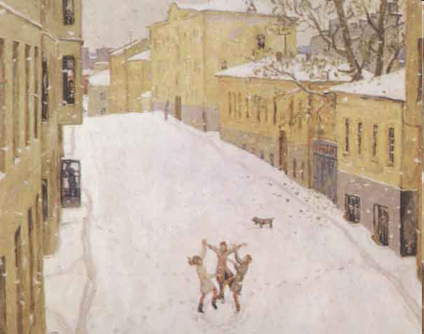 Первый снег! Какое прелестное зрелище.Снег идет хлопьями , дети во дворе играют , резвятся... И как же приятно ходить по этому белоснежному ковру. Вся улица покрыта этим блестящим и первым ковром в эту зиму.И морозно , и свежо на улице. И бродить приятно... И в ту же минуту я побежал на улицу к друзьям. А из балкона выглядывал мой дед, наверное вспоминал детство свое.Приглянулся в тот момент мужик в телефонной будке, выскочила собачка и растерянно смотрела на снег...