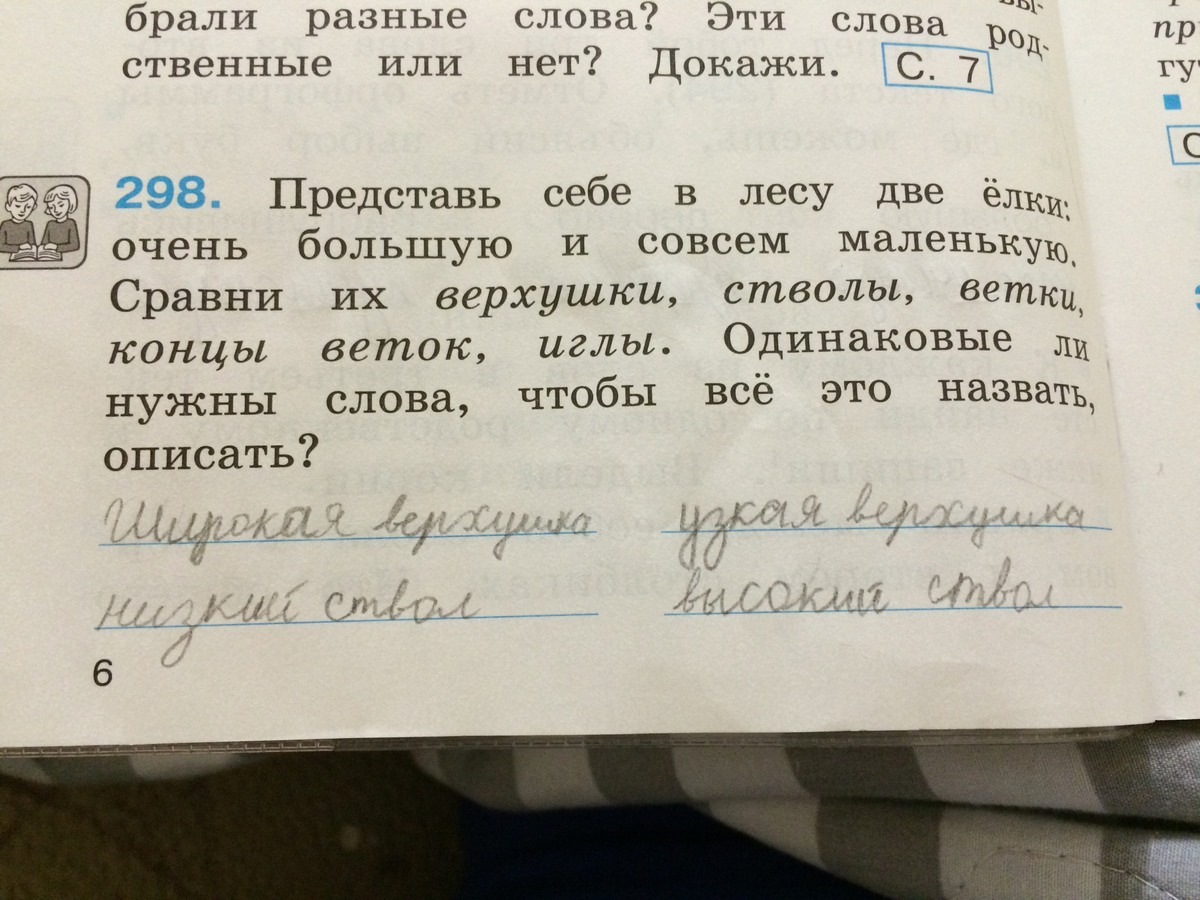Большая ель густая, высокая, старая, возможно кривая. Маленькая- аккуратная, низенькая, стройная, молоденькая. Слова совершенно противоположного значения -антонимы))
