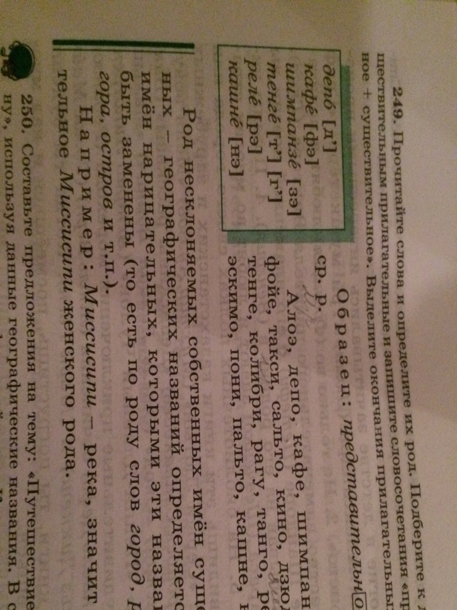 Лечебный алоэ-муж.р.,трамвайное депо-ср.р.,вечернее кафе-ср.р.,хитрый шимпанзе-муж.р.,горячий кофе-муж.р.,светлое фойе-ср.р.,быстрое такси-ср.р.,опасное сальто-ср.р.,интересное кино-ср.р.,детское дзюдо-ср.р.,серьёзное жюри-ср.р.,бумажная тенге-жен.р.,маленькая колибри-жен.р.,аппетитное рагу-ср.р.,страстное танго-ср.р.,красное реле-ср.р.,вкусный эскимо-муж.р.,быстрая пони-жен.р.,мятое пальто-ср.р.,чёрное кашне-ср.р.,говорливый какаду-муж.р.(Одно слово только не написала его не видно полностью)
