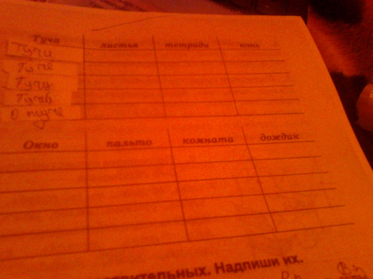 Р.п. (кого? чего?) - тучи, листьев, тетрадей, коня, окна, пальто, комнаты, дождика.