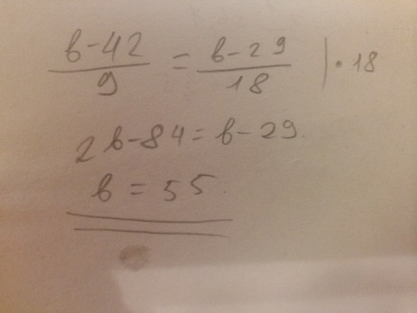 (b - 42) * 18 = 9 * (b - 29) - по свойству пропорции