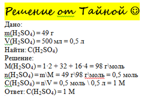 Определить молярность раствора ,в 500 мл которого содержится 49 г серной кислоты.