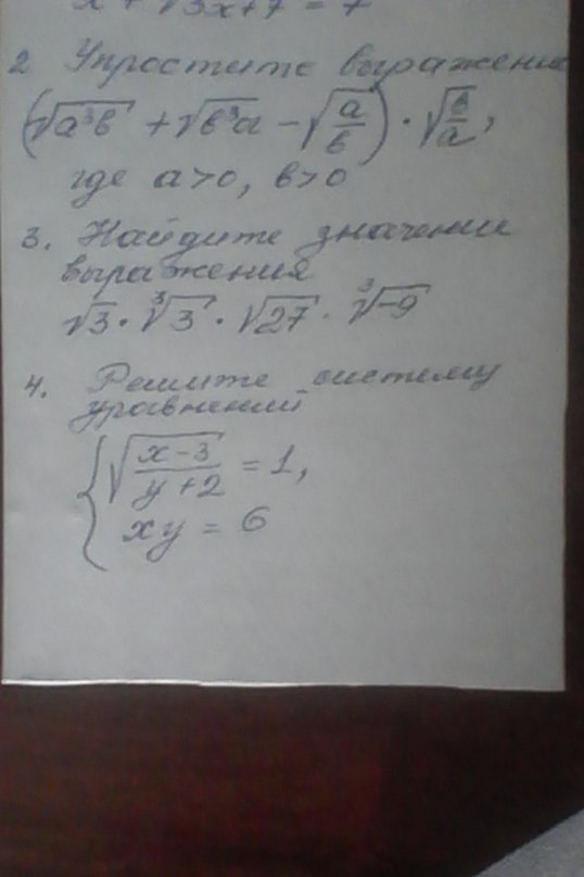 4.) решите систему уравнений: { в числителе корень из x-3 в знаменателе y+2 = 1, система {xy=6.