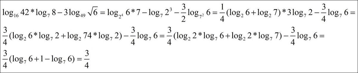Найти значение выражения: log по основанию 16 числа 42⋅log по основанию 7 числа 8 − 3log по основанию 49 числа под корнем 6