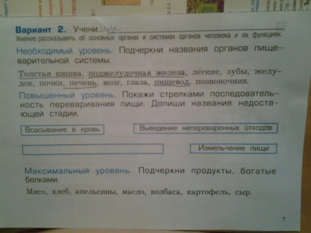 Кстати, в первом задании нужно еще подчеркнуть "желудок"