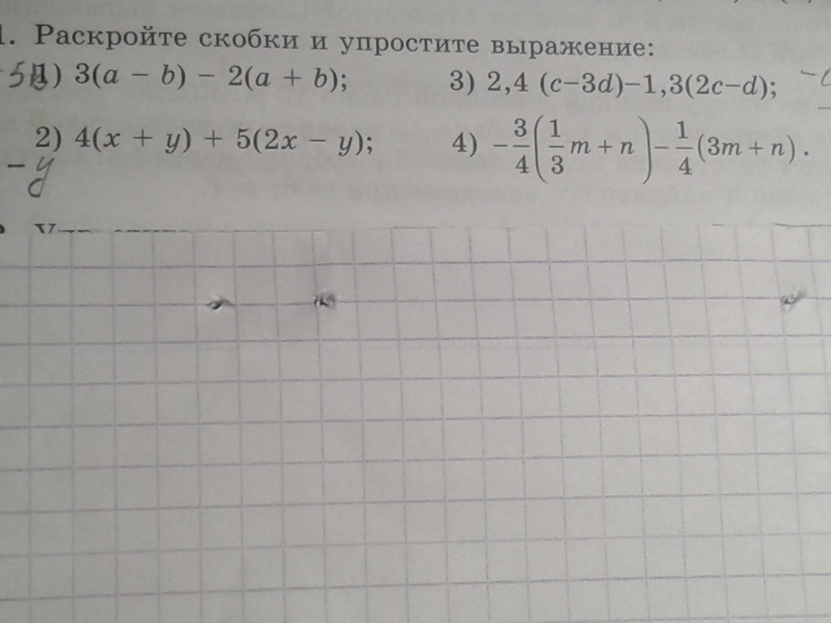 -3/4 * (1/3m + n) - 1/4 * (3m + n) = -3/12m - 3/4n - 3/4m - 1/4n = - 3/12m - 9/12m - 3/4n - 1/4n = -m - n