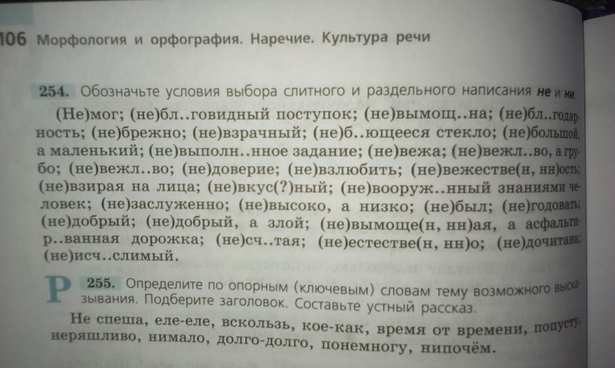 Не мог; неблоговидный; не вымощена; неблагодарность; небрежно; невзрачный; небьющееся; не большой, а маленький; невыполненное задание; невежа; не вежливо, а грубо; невежливо; недоверие; невзлюбить; невежественность; невзирая на лица; невкусный; невооруженный; незаслуженно; не высоко, а низко; не был; негодовать; недобрый; не добрый, а злой; не вымощенная, а асфальтированная; не считая; неестественно; не дочитана; неисчислимый.
