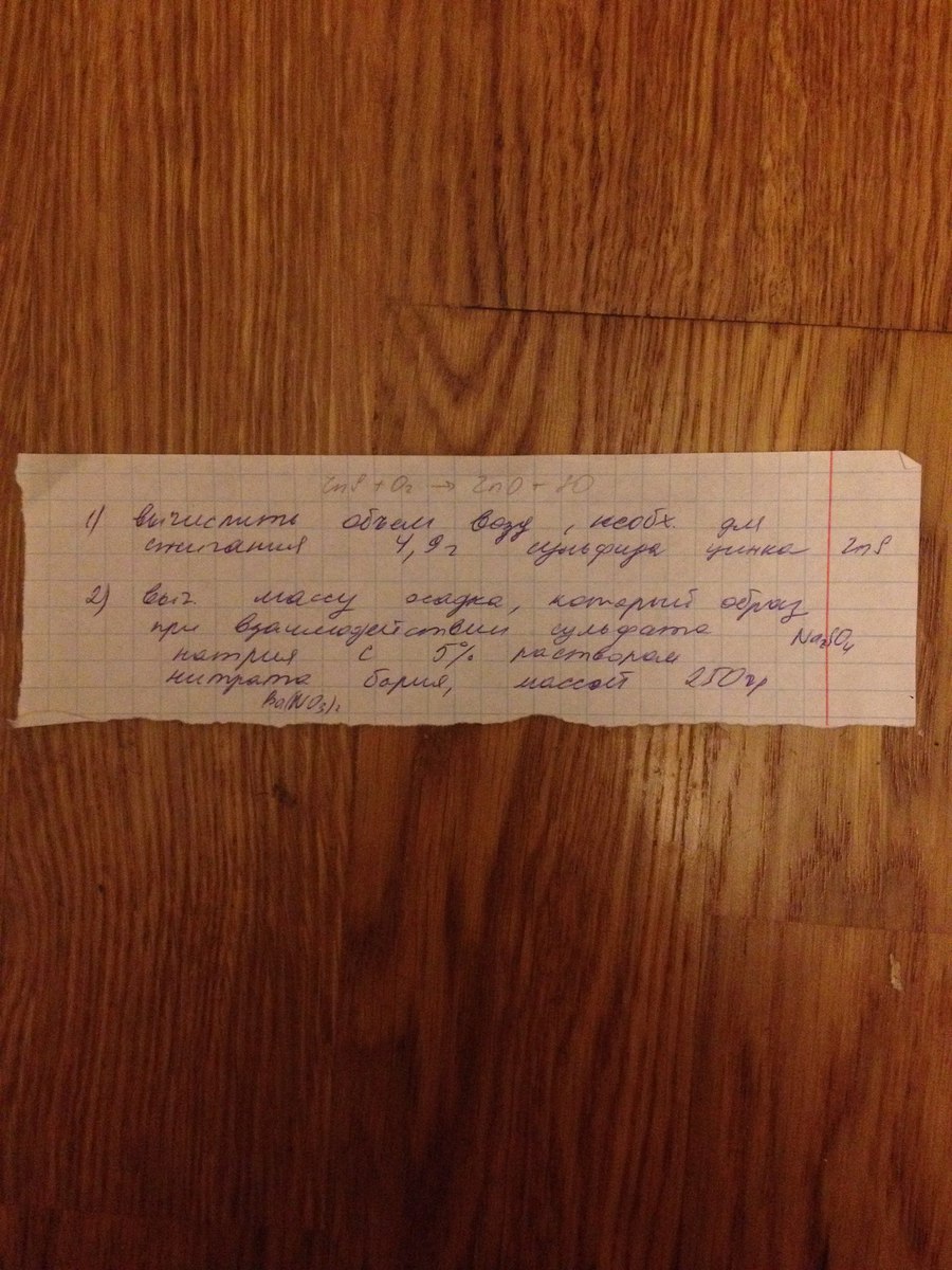 n(ZnS) = m/M = 4,9/97 = 0,05 моль