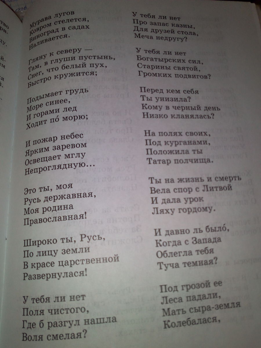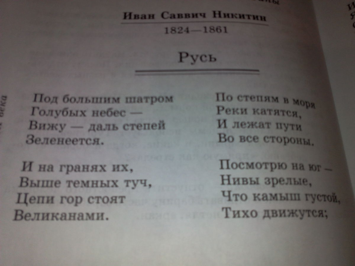 Стихотворение никитина русь это и степи и леса и вся ширь родной земли найдите стихотворную цитату которой ярко выразился бы чувства поэта к родине.