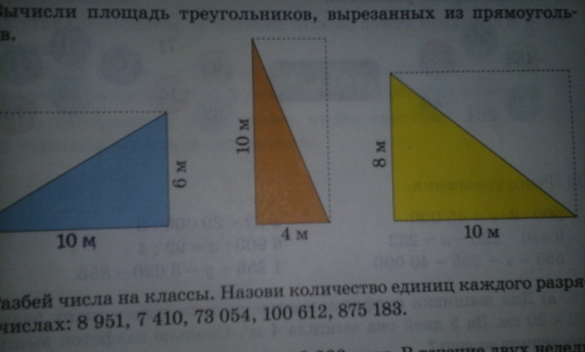 2. 10 м·4 м=40 м² ⇒ SΔ = 40/2 = 20 м².