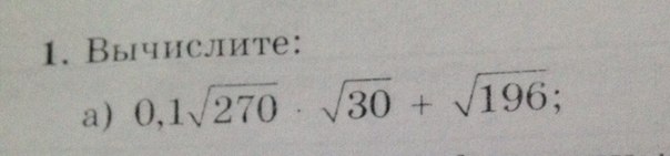 0,1√270*√30+√196=0,1√10*3*9*3*10+√4*49=0,1*10*9+14=9+14=23