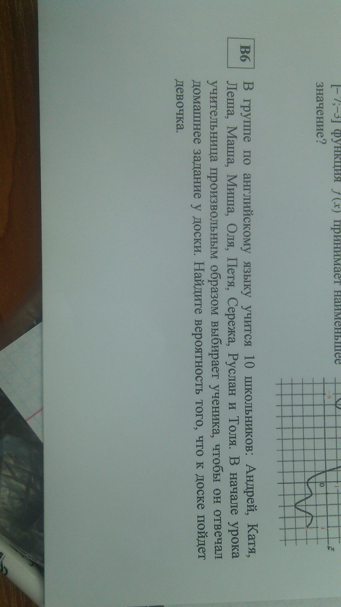 ответ 0.3 так как всего учеников 10 а девочек 3 отношение будет 3 к 10
