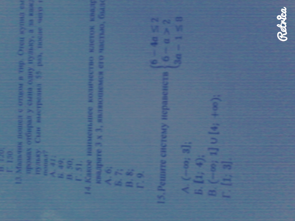Первое неравенство: -4а<=-4; а>=1. Второе неравенство: -а>-4; а<4. Третье неравенство: 3а<=9; а<=3. Наносим на координатную прямую х. Видим тройное пересечение на отрезке от 1 до 3, включая эти числа.