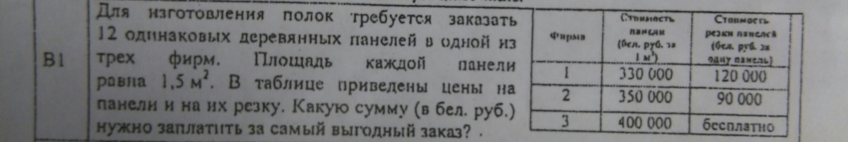 для изготовления полок требуется заказать 12 одинаковых деревянных панелей в одной из трёх фирм