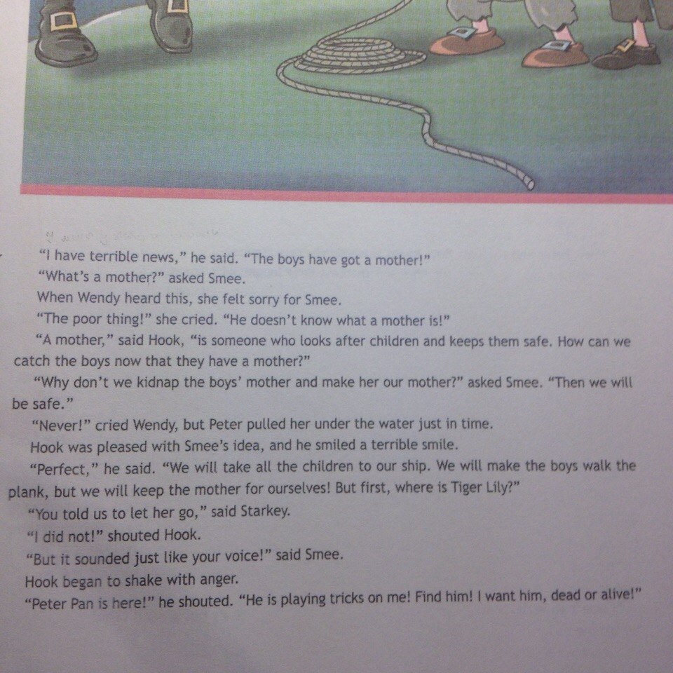 - Мама, - сказал Хук, - это та, кто приглядывает за детьми и следит за их безопасностью. Как мы теперь поймаем мальчишек, если у них есть мама?