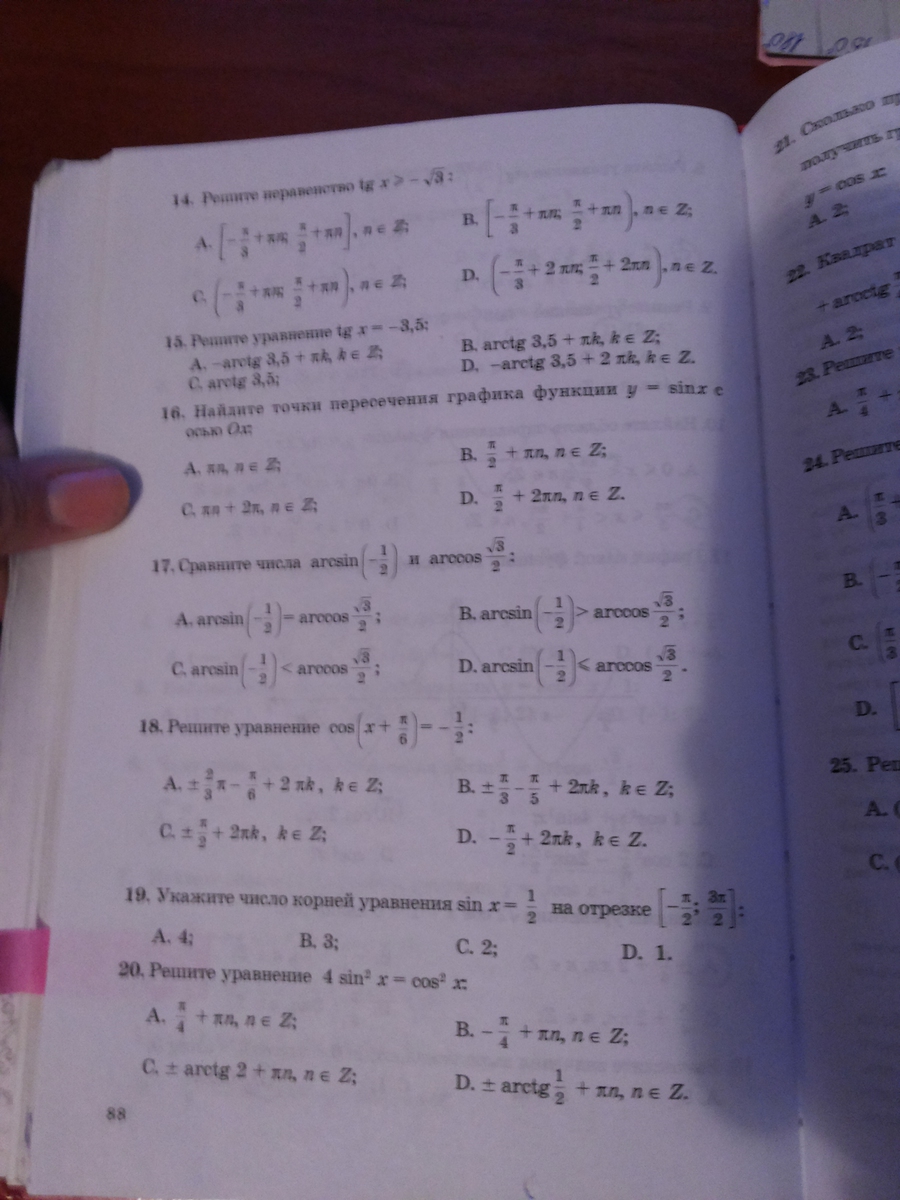 14. tgx≥-√3;⇒tgx=-√3⇒x=-π/3+kπ;k∈Z;