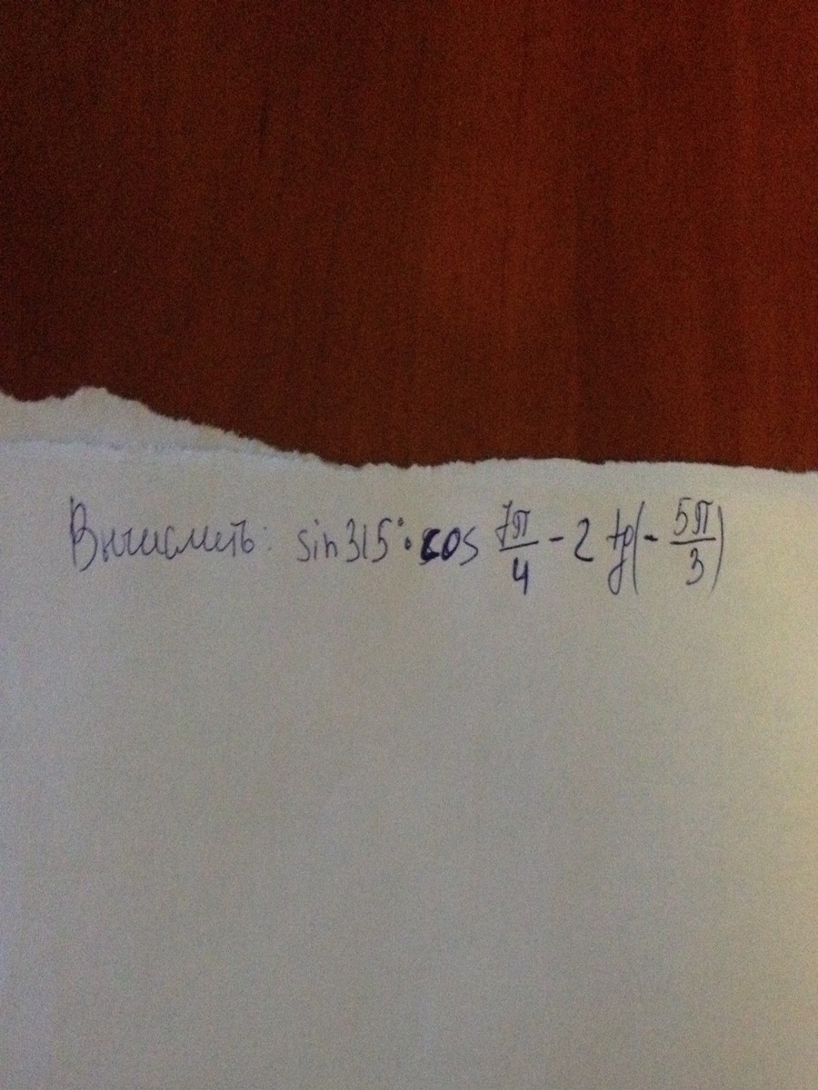 sin 315 · cos 7π/4 - 2 tg (-5π/3) = -sin π/4 · cos π/4 - 2 (sin π/3) / (cos π/3) =