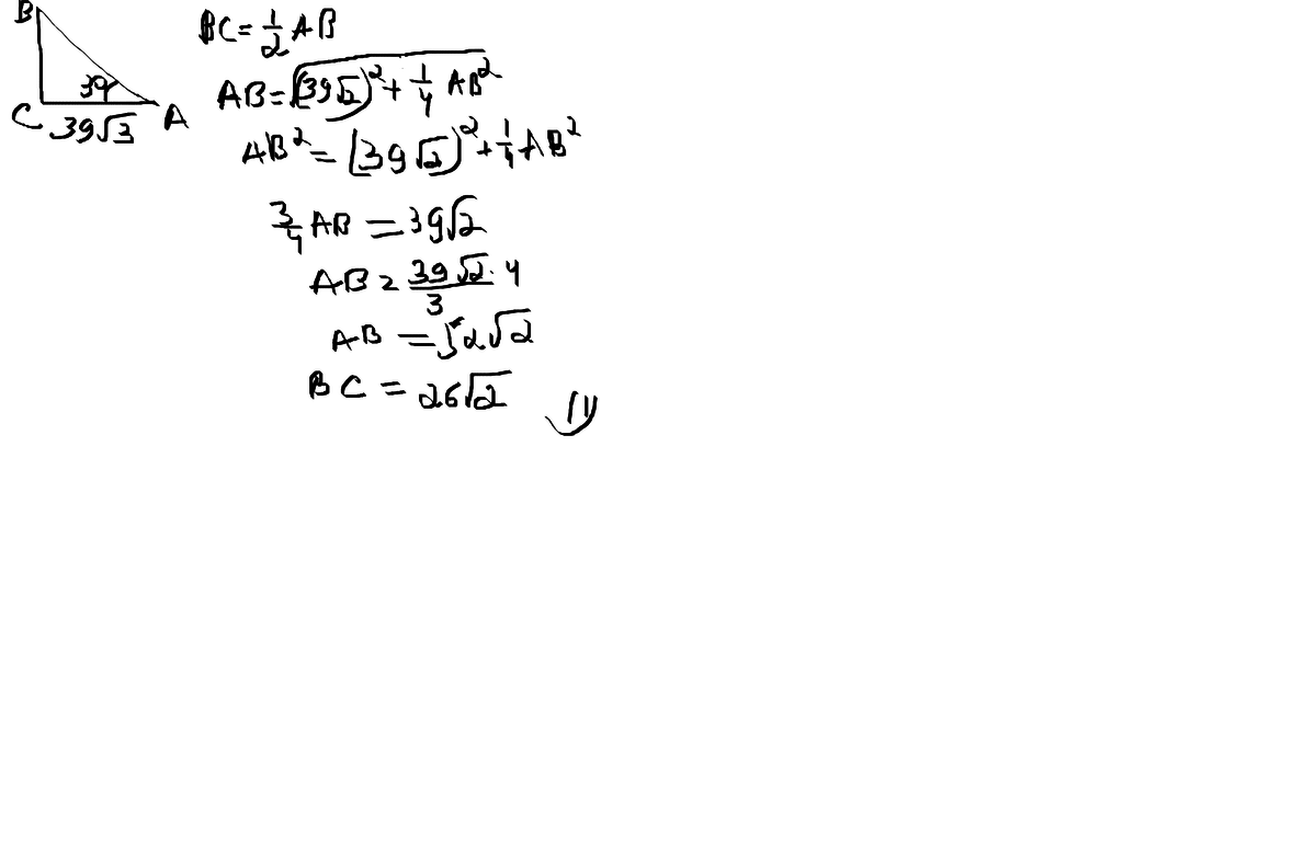 в треугольнике abc угол c равен 90 градусов угол a равен 30 градусов ac=39 корен из 3 найдите bc