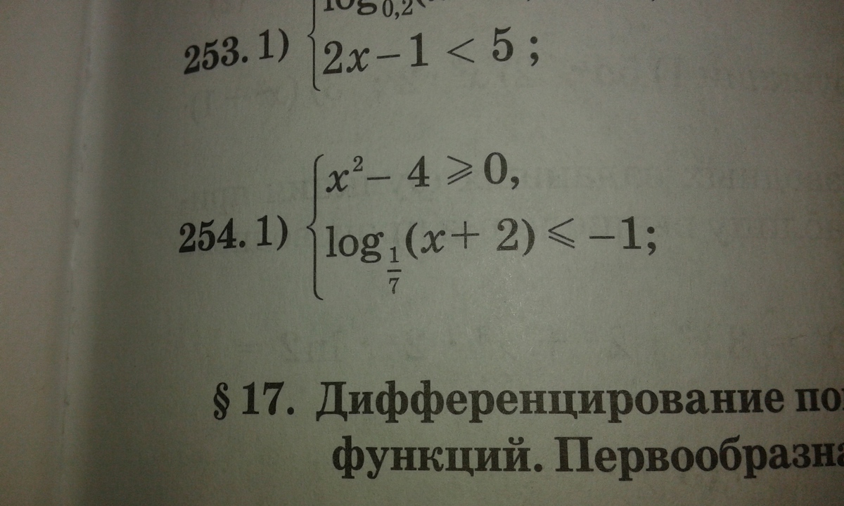 {x²-4≥0; log₁/₇(x+2)≤ -1; {(x-2)(x+2)≥0; x+2≤ 7; {(x-2)(x+2)≥0; x≤5; ++ (-2) -- 2 ++; (-∞;-2] U [2;5]