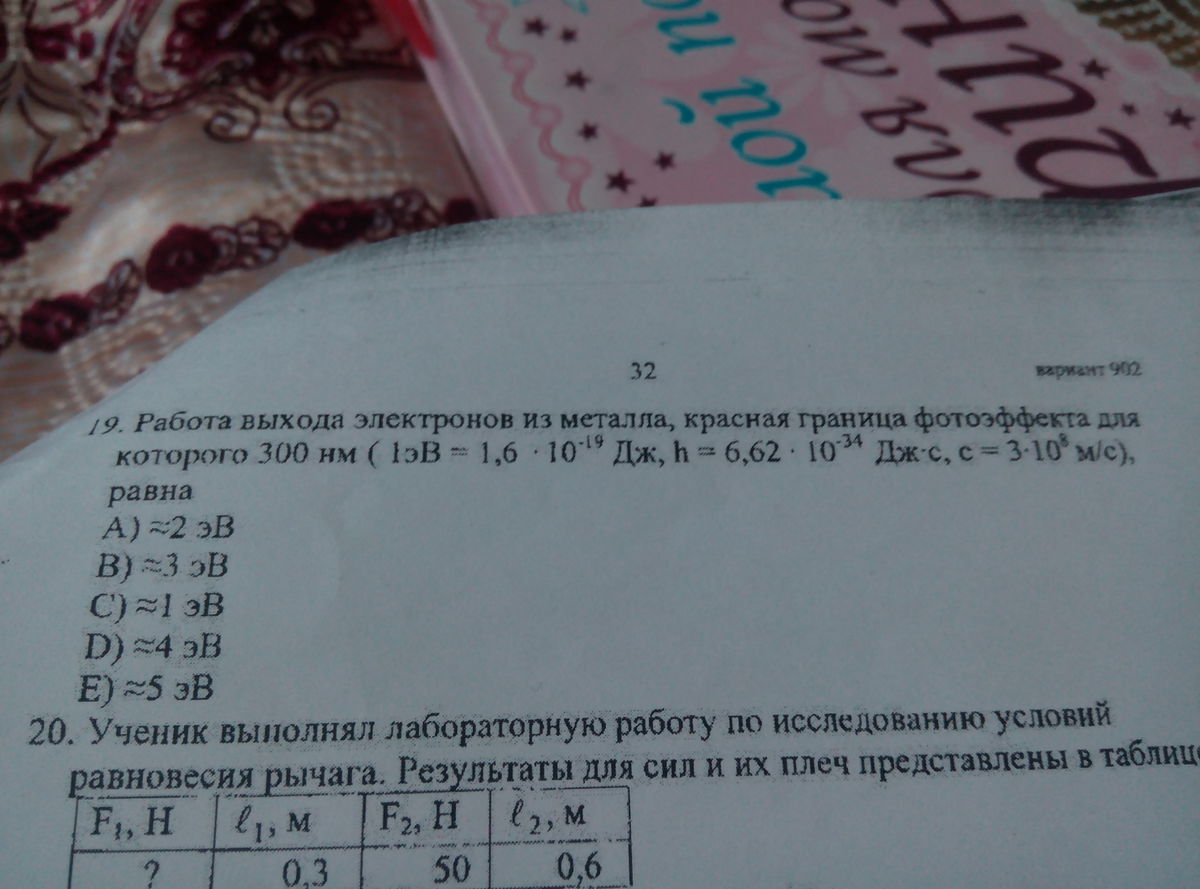 A=h*c/L=6,62*10^-34*3*10^8/300*10^-9=6,63*10^-19 Дж=4,1 эВ