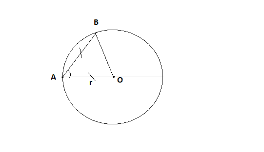 Рассмотрим получившийся после построения хорды и диаметра треугольник АОВ. Он равносторонний, т.к. АВ=АО=r по условию, и ВО=r. В равностороннем треугольнике все углы равны 60 градусов.