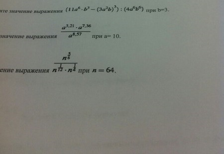 (11a⁶b³-9a⁶b³) : 4a⁶b⁶ = 2a⁶b³ : 4a⁶b⁶ = b³ : 2b⁶= 1/2 * b⁻³ = 1/2b³ = 1/(2*3³) = 1/ 2*27 = 1/54