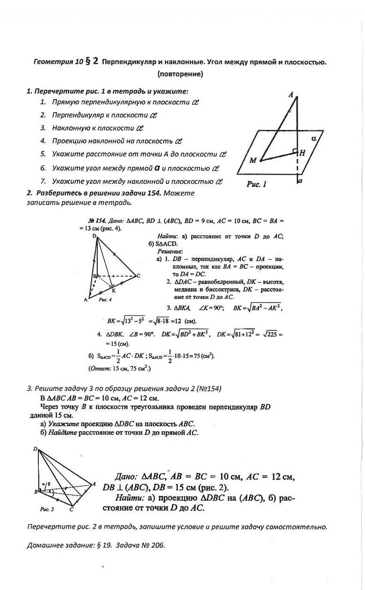 Помогите пожалуйста с геометрией. Перпендикуляр и наклонные.Угол между прямой и плоскостью