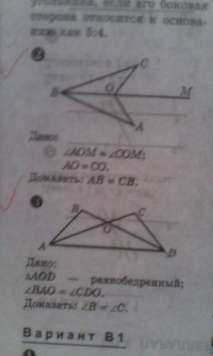 доказательство: Рассмотри треугольник АВО и треугольник ДСО. Т.к треугольник АОД равнобедренный то АО=ДО, значит треугольник АВО = треугольнику ДСО (по двум сторонам и углу между ними). Т.к треугольники равны то и соответственные элементы равны, значит угол В= углу С.